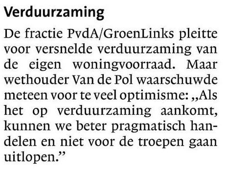 - Juist de woningbouw het meest voor de hand liggende segment is waar je energie besparende maatregelen kan treffen en CO2 reductie kan realiseren, en je naar ons idee eruit moet halen wat erin zit