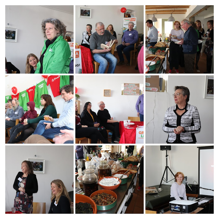 De PvdA GroenLinks kandidaten presenteerden zichzelf en ook het verkiezingprogramma werd toegelicht. Toevoegingen die de partij kreeg op hun partijprogramma waren;  afschaffen van afschieten particulier vuurwerk, niet alleen het fietsverkeer op de Bobeldijk maar ook op de Walingsdijk veiliger maken, het fietspad langs de windmolens weer in ere herstellen – het is er nu erg donker,  auto’s mogen er opeens rijden en zijn snelheidsduivels geworden, en het aanmoedigen van het consumeren van lokale producten en gewassen. Onder de toezegging dat we deze aanvullingen zullen toevoegen aan het programma werd het Westfriese biertje “ientje toe” ontkurkt en het buffetje met vergeten groenten geopend.