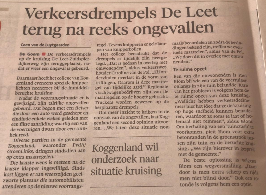 In dit artikel verwijst de Fietsersbond West-Friesland naar een eerder onderzoek van RTL Nieuws en ingenieursadviesbureau Sweco. Daarin worden Koggenland én Berkhout expliciet genoemd: “één van de gemeenten met een hoog aandeel fietsroutes over de onveiligste wegen is het Noord-Hollandse Koggenland. Een belangrijk deel van die routes loopt over de centrale weg door het lange lintdorp Berkhout.”