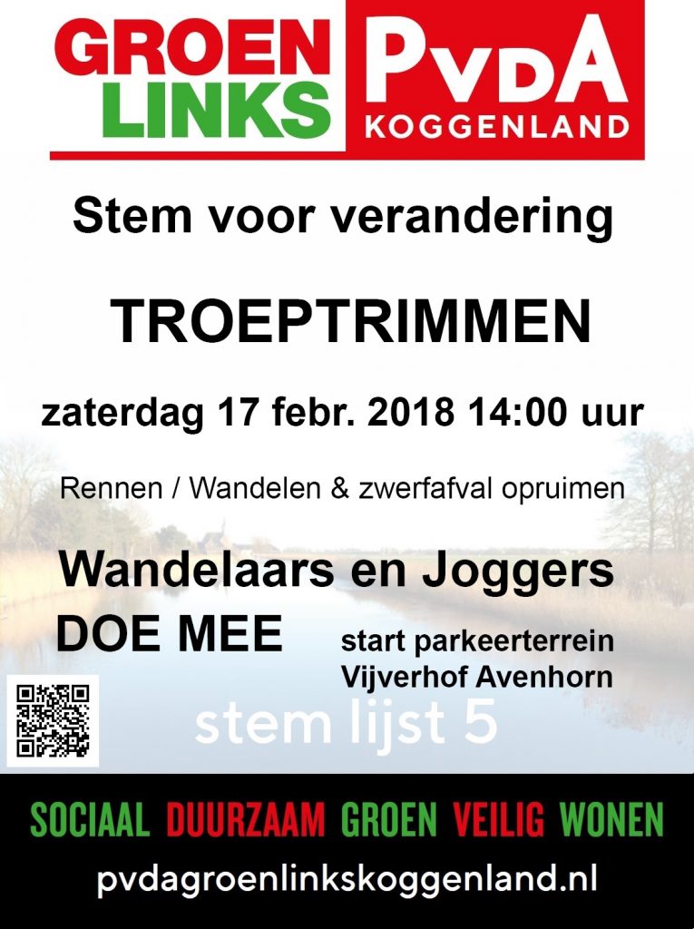 Deze vorm van bewegen is niet nieuw. Brigitte Paulissen uit Haarlem stoorde zich tijdens het joggen aan zwerfafval. Zij besloot daarom maar te gaan sporten mét afval. In 2012 doopte zij dit ‘troeptrimmen‘. “Na een uur joggen heb je heel snel een vuilniszak vol”, zegt ze. “Er ligt meer op straat dan je denkt. Vooral veel snoeppapiertjes en blikjes energiedrank.” Alle beetjes helpen, want in Nederland ligt vijftig miljoen kilo aan zwerfafval. Iedereen kan meedoen aan troeptrimmen en het initiatief kent dan ook verschillende gradaties: van wandelend vuil prikken tot aan joggen. (Bron NRC)