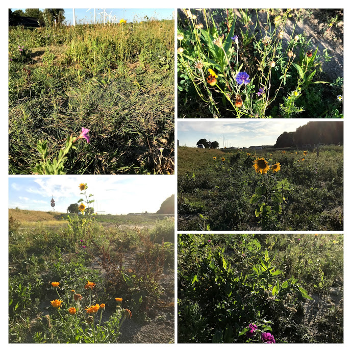 In mei hebben we de Jaagweg nog ingezaaid, om meer bijen te lokken naar Koggenland. Helaas maaide de provincie anderhalve maand later het talud. Daar gingen onze zaadjes. Gelukkig steekt hier en daar een sterk soort zijn kopje boven het maaiveld. Ook de mooie gele zonnebloemen laten hier van zich horen. Iedere keer als ik voorbij rijd glimlach ik.